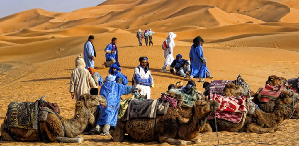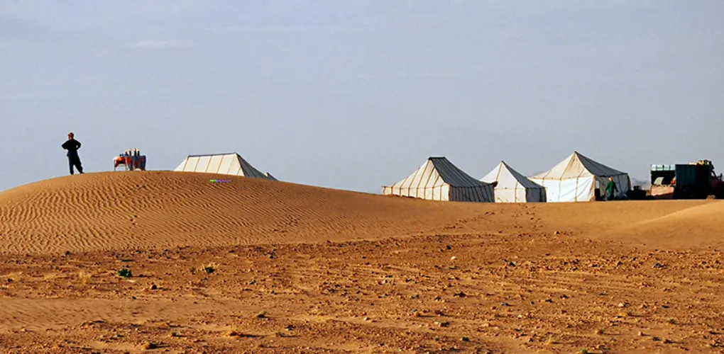 We take a scenic drive across the High Atlas Mountains to Ouarzazate and then Zagora. It takes almost 8 hours driving, passing along date-palm oases, Berber villages, and incredible landscapes. In Zagora we leave the minibus and take a more appropriate vehicle that will take us to Faija. There we meet the camels and their cameleers.