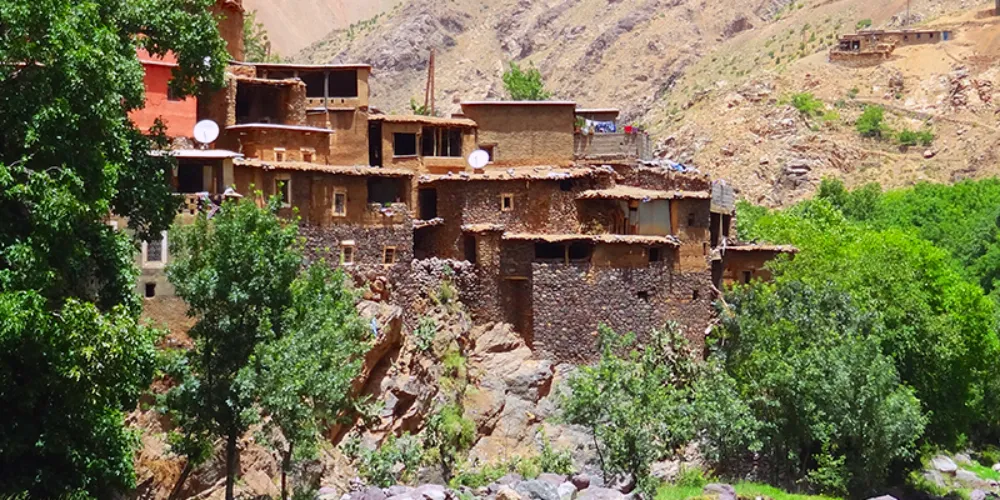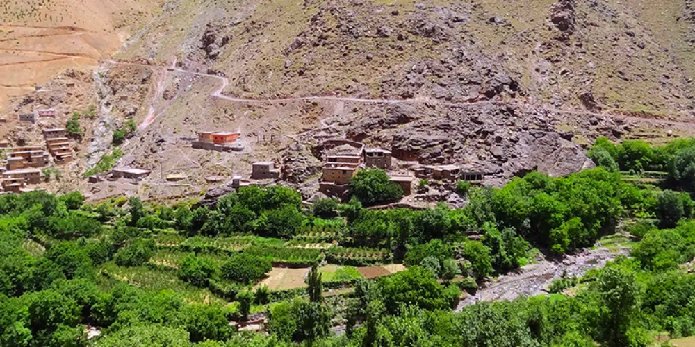 From Imlil we will cross into the steep Iminane Valley above green terraced fields on a paved road and then at the highest village in the valley, Tachedirt, we will descend by way of dirt road to the village of Tansghart where we will spend the night in a guest house.