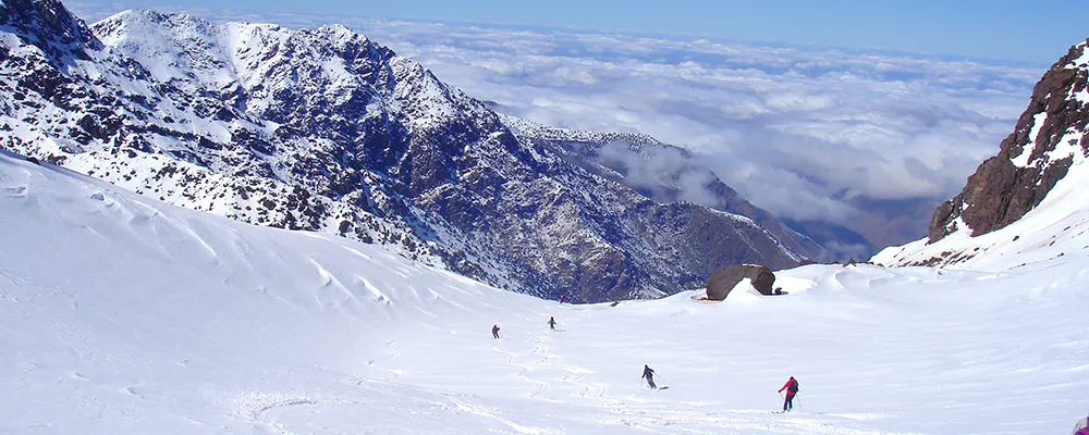 This 3-day ski touring is a mix between piste and off-piste skiing. You will start off piste skiing at Oukaimeden Ski Resort and move to Imnane Valley, where you will ski off-piste on the following days.